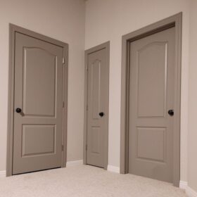 Ražojam jaunas koka durvis pēc klientu pieprasījuma, krāsotas (tekstūru nosedzošas), lakotas, eļļotas, vaskotas(tekstūru atsedzošas), pieejami dažādi toņi, sadarbojamies ar dažādiem pigmentu tirgotājiem kā rezultātā spējam piedāvāt plašu toņu sortimentu. Bez durvju ražošanas piedāvājam izveidot arī tā saucamos kārbu paplatinājumus katrai situācijai atsevišķi, kopā ar durvīm piedāvājam arī nestandarta kleidas, strādājam ar dažādiem furnitūru tirgotājiem, piedāvājam iestrādāt dažāda tipa eņģes (slēptās, parastās, kalibrējamās utt.) varam iestrādāt krītošos sliekņus (neredzamos sliekņus), piedāvajam iestrādāt arī dažāda tipa stiklojumu, (paketes parastās un tonētas bez plēves, stiklu ar ornamentiem, stikls ar faceti, utt). Piedāvājam iestrādāt durvīs uguns aizturošo blīvējumu, skaņas slāpējošos materiālus u.c. nianses, esam šajā nozarē jau 20 gadus un pieredze ir iekrājusies. Piedāvajam arī dekoratīvos sienu panelējumus.